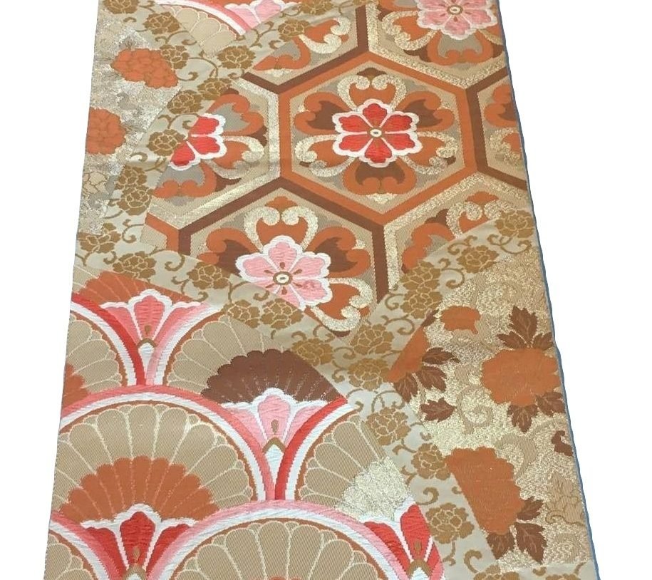 « Obi »(ceinture traditionnelle de kimono) pour la décoration d’intérieur avec le motif »末広 » éventail