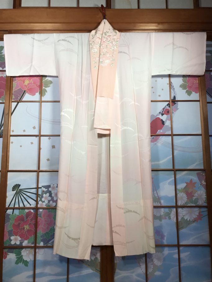 Il s’agit d’un beau kimono de chambre japonais fabriqué en soie de couleur rose.